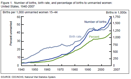[img]http://4.bp.blogspot.com/-C7tjLefOWcg/UTaOWs4XR2I/AAAAAAAAAgM/2Rhc_hYx5Pw/s1600/charta.png [/img] “In 2007, nearly 4 in 10 births were to unmarried women: The proportion of all births to unmarried women was 39.7%, up from 34.0% in 2002. The 2007 proportion was more than double that for 1980 (18.4%).”